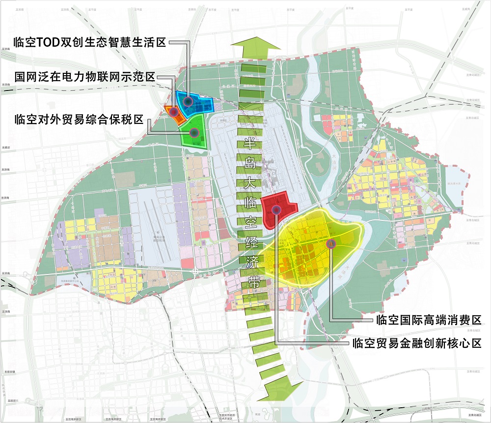 青岛发起“十五个攻势”以来,临空经济区作为青岛国际航运贸易金融创新中心建设攻势的两大先行区之一,紧紧抓住“一带一路”、上合示范区加快建设等重大机遇,以平台思维规划建设临空经济区,全力推动临空区与上合示范区协同发展,建设“半岛大临空经济带”,重点打造临空国际高端消费区、临空贸易金融创新核心区、临空TOD双创生态智慧生活区、临空对外贸易综合保税区、国网泛在电力物联网示范区等五大板块,聚焦“一带五区”力求突破,带动临空经济区全域崛起,助推青岛国际航运贸易金融创新中心建设。