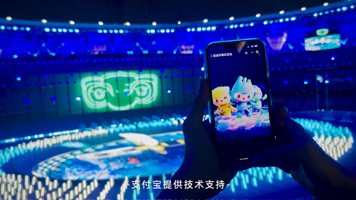 激动人心的点火仪式外,开幕式AR互动也令现场观众印象深刻,打开支付宝扫描主舞台,即可在现场召唤吉祥物“三小只”、放飞许愿灯、寄送明信片......AR(增强现实)与 AI(人工智能)的技术融合让人耳目一新。