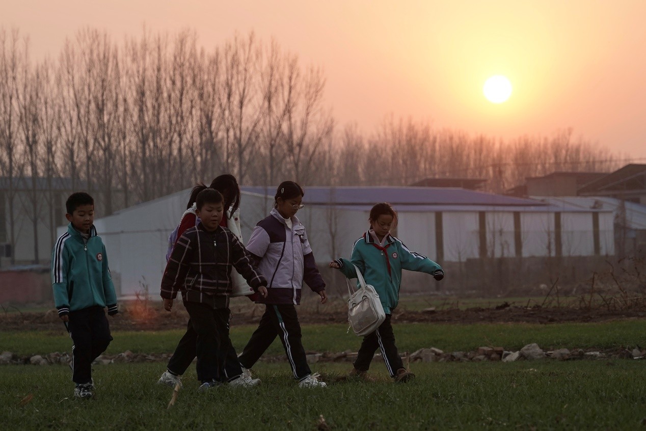 ▲夕阳西下,杭头村的孩子们放学了约着去图书馆看书。胡弘彪 | 摄