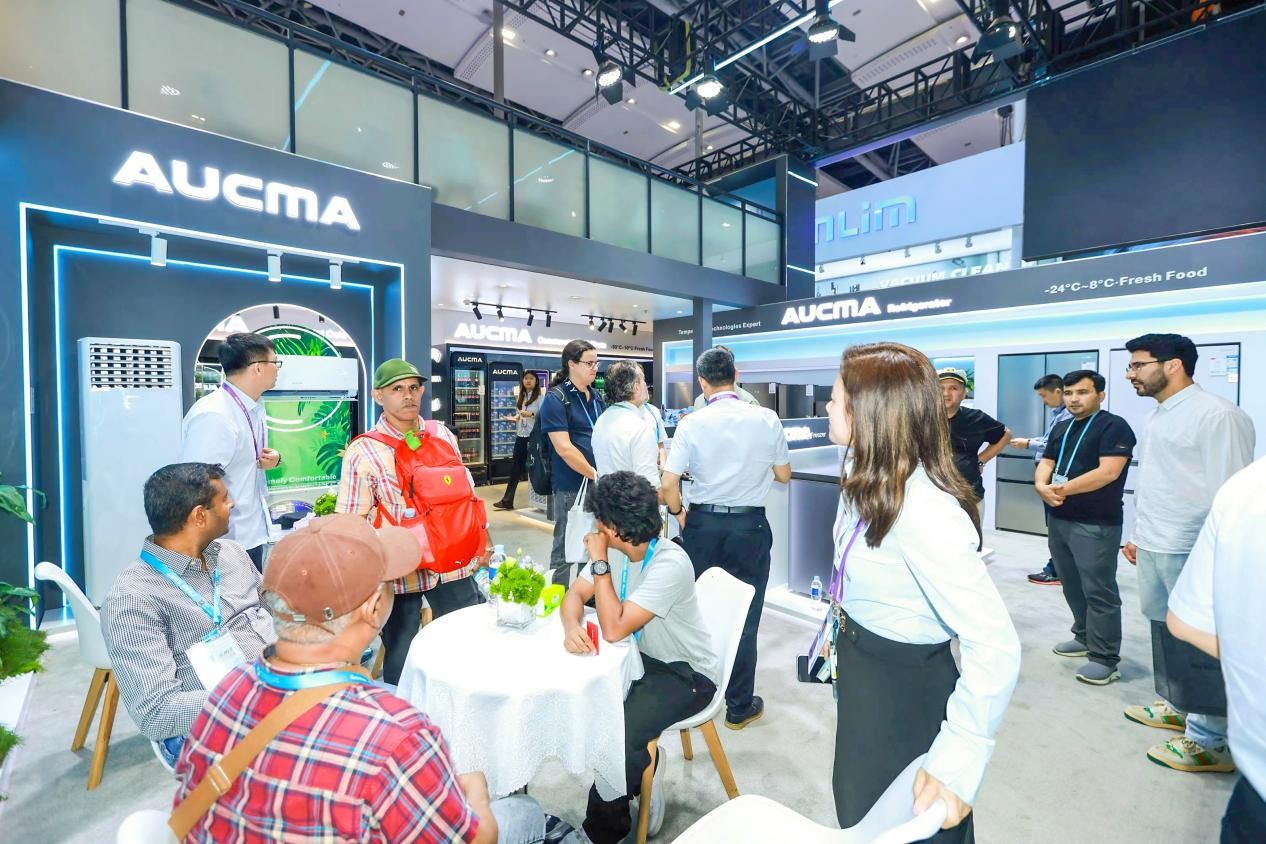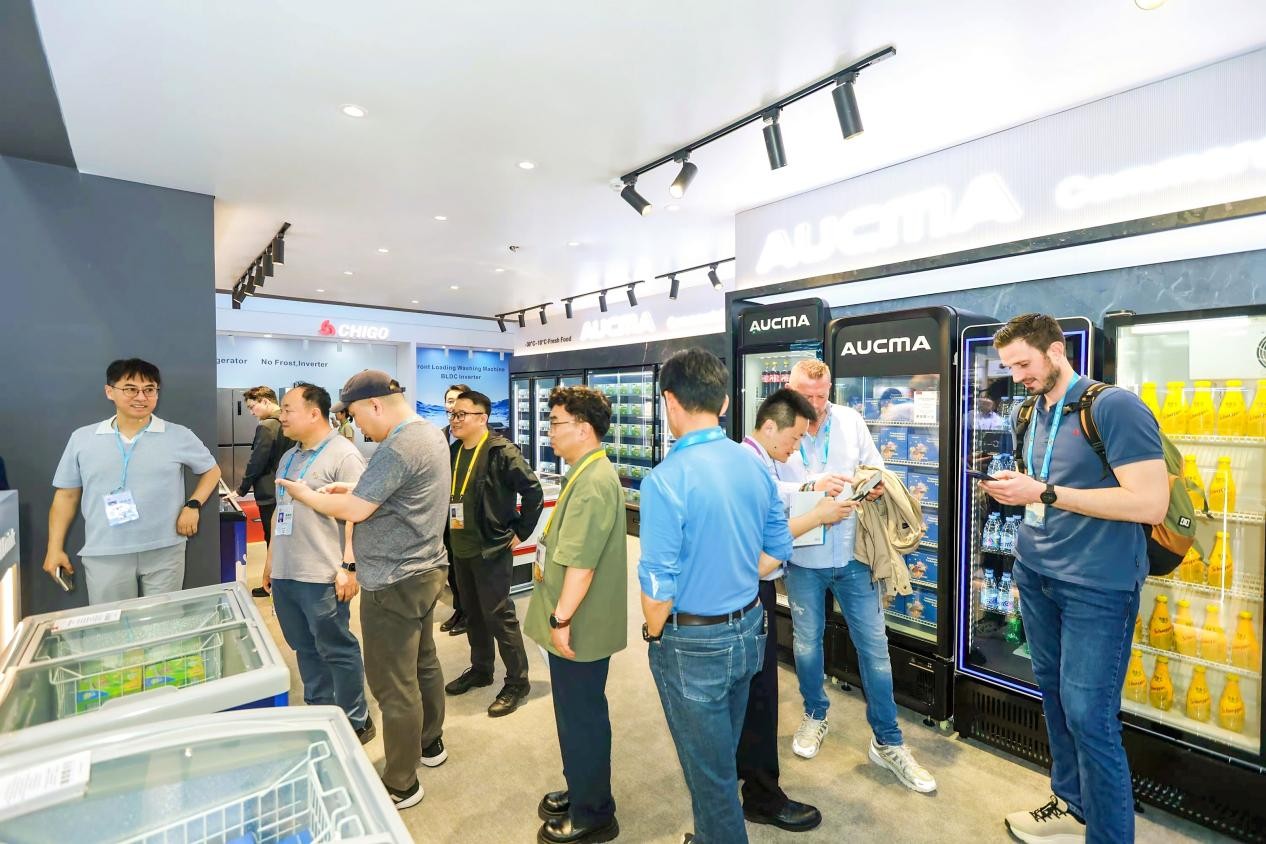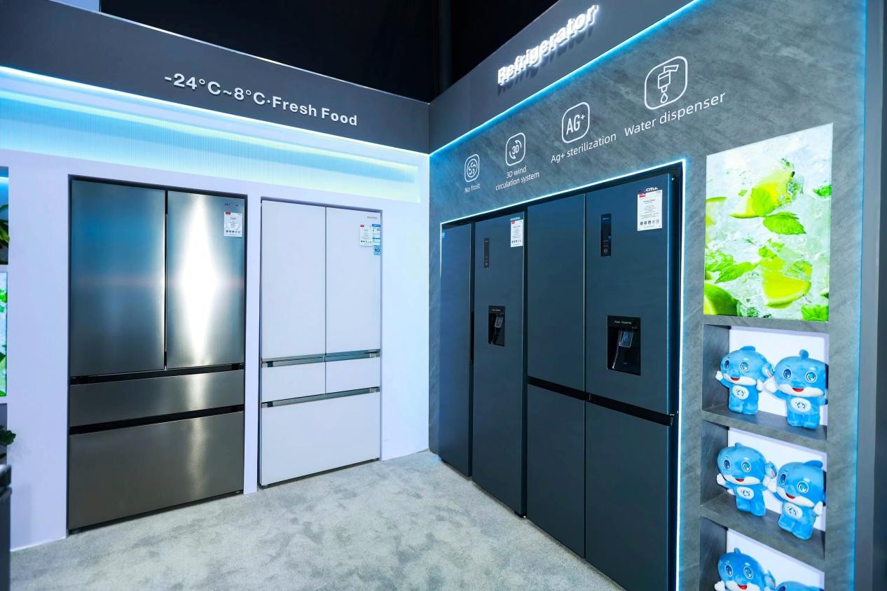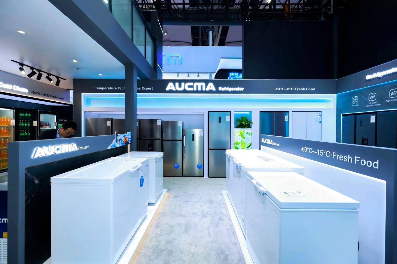 本届展会,澳柯玛围绕家用、商用冷链、空调及生活电器全品类展出核心产品。家用展区带来法式、多门、十字门冰箱及欧洲新品冷柜,“双拼嵌入” 系列凭借独立双系统、灵活组合设计成为亮点,新品RF-345WGCD更以全景视窗、精准控温等功能提升场景适配性;商用冷链以商超场景化展示,推出风冷立展、卧展明星机型及刷卡支付无人零售解决方案,依托IoT实现智能监控,智慧冷链则以风幕柜等产品打造一站式存储展示方案,凭借环保冷媒与模块化设计适配全球多元商用场景;空调方面重点展示黑白面板挂机、中东T3工况机型,洁净舱系列以五重健康净化技术叠加AI智能功能,满足高温地区与海外定制化需求;同时展出了嵌入式护理机、超净洗衣机、干衣机、烟灶、饮水机等产品,为海外客户和用户提供全温区的产品解决方案。