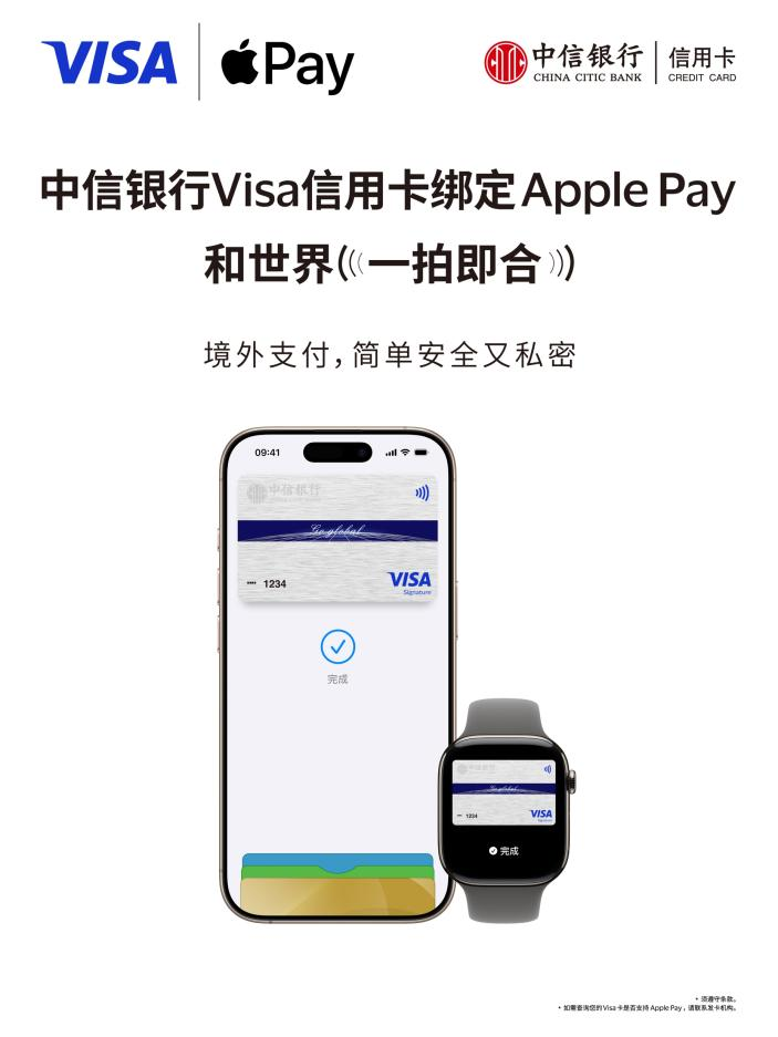 中信银行支持消费者将Visa卡绑定Apple Pay 境外支付更便捷、更安全