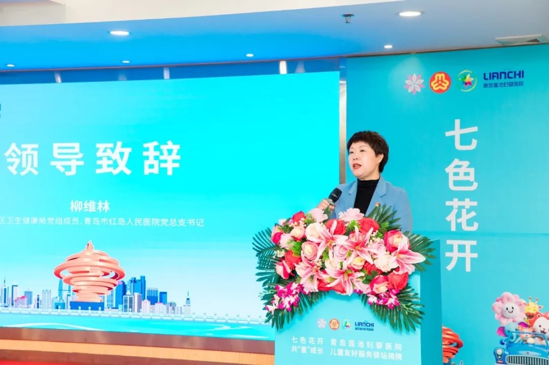 区卫健局党组成员、青岛市红岛人民医院党总支书记柳维林在讲话中表示,儿童健康是全民健康的基石,更是卫生健康工作的重要民生落脚点。青岛莲池妇婴医院“儿童友好服务驿站”的启用,是医院将优质医疗与人文关怀融合的创新实践,为医疗机构服务儿童健康作出了示范。她希望医院以驿站为起点,坚持高标准服务,发挥专业优势,注重内涵建设,在细节中体现对儿童的尊重与关爱;加强联动协同,与多部门形成合力。区卫健局将持续支持,共同把驿站办好,助力儿童健康事业发展。