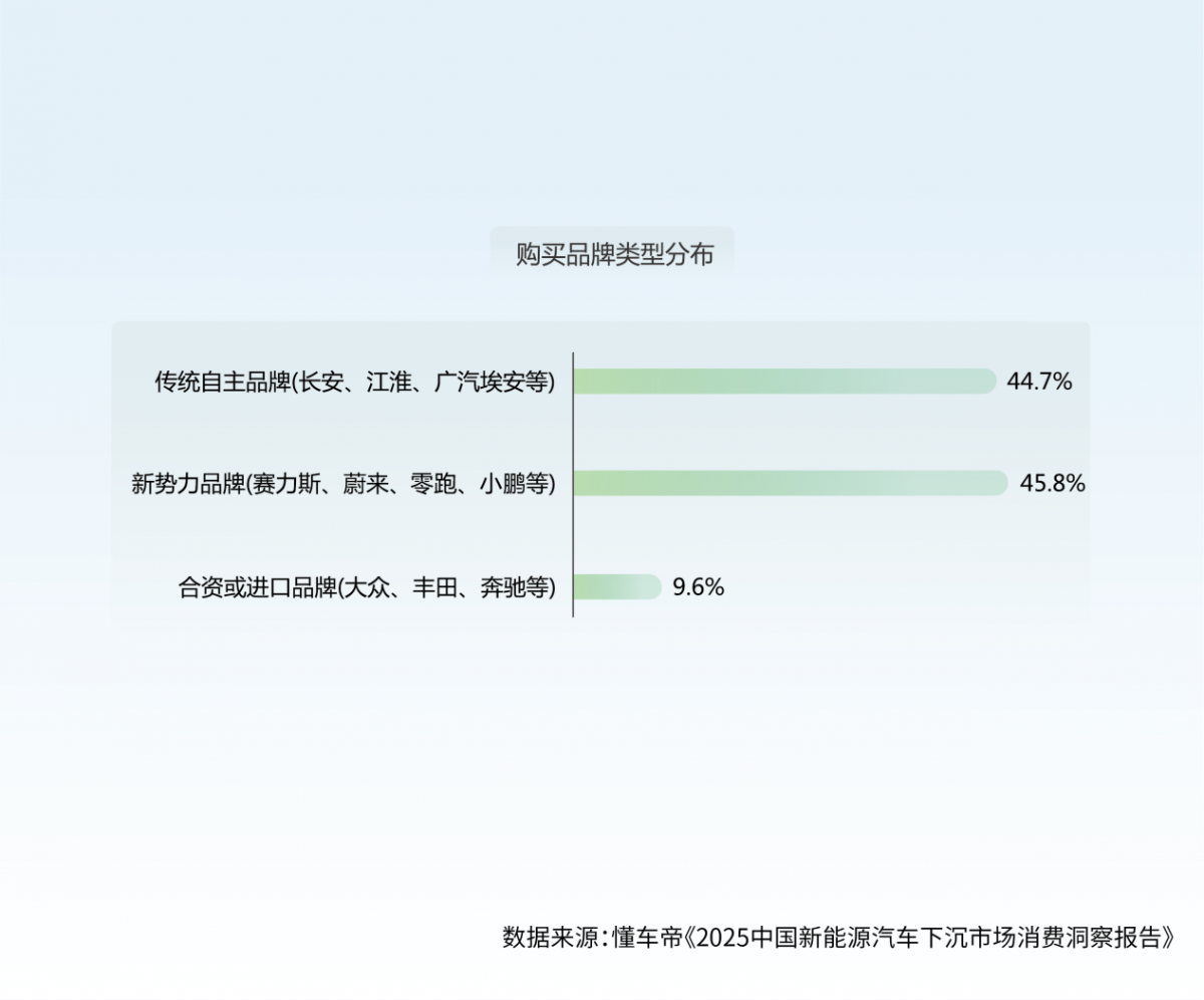与城市用户相比,下沉市场用户在汽车选买、品牌偏好上都有自己的特点。由于媒体和销售渠道分散,下沉市场用户更依赖从线上获取信息,懂车帝等汽车垂直App及抖音等短视频平台是用户看车的首选渠道。“线上研究,线下体验”是下沉市场用户典型的买车场景,新事物在这里反而更容易被接纳。