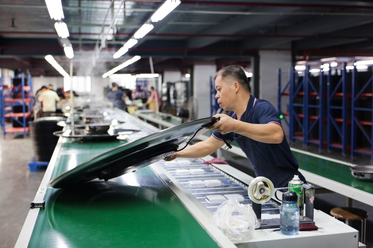 工人正在为暖菜板安装电子元件。李源 | 摄