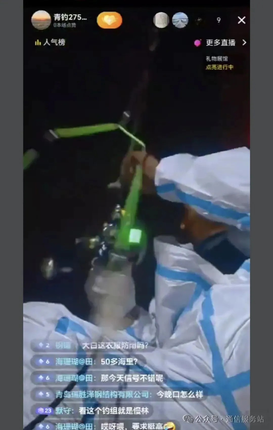 在50多海里(90多公里)海上进行抖音钓鱼直播