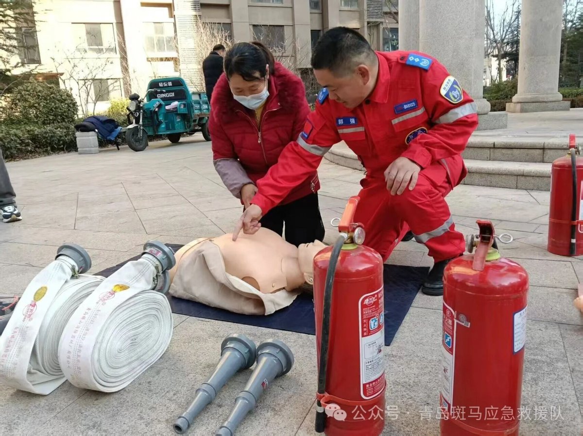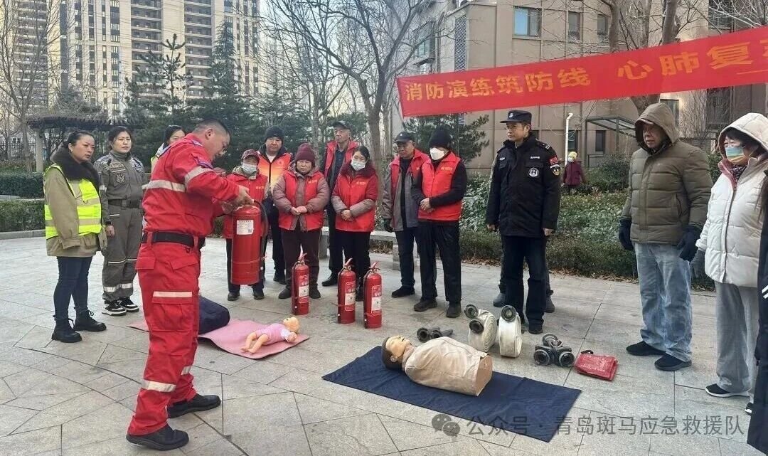 1月8日上午,青岛斑马应急救援队“平安家园守护行动”首场社区培训活动在市北区湖岛街道湖岛社区滨海1号小区中心广场举行。湖岛社区王成元、业委会主任乔岩、山东锦华物业管理有限公司青岛分公司经理谢震以及物业工作人员、社区热心群众20多人参加了此次培训活动。