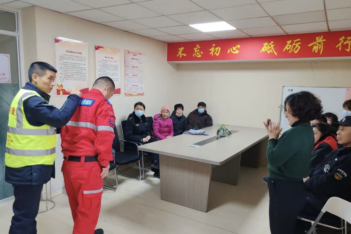 志愿者李友向社区群众做了主题分享,讲解了元旦期间如何实施海姆立克急救法对一位邻桌吃饭被食物噎住的群众实施急救。在遇到紧急情况时,一定要稳定心态,按照科学方法实施应急救援。