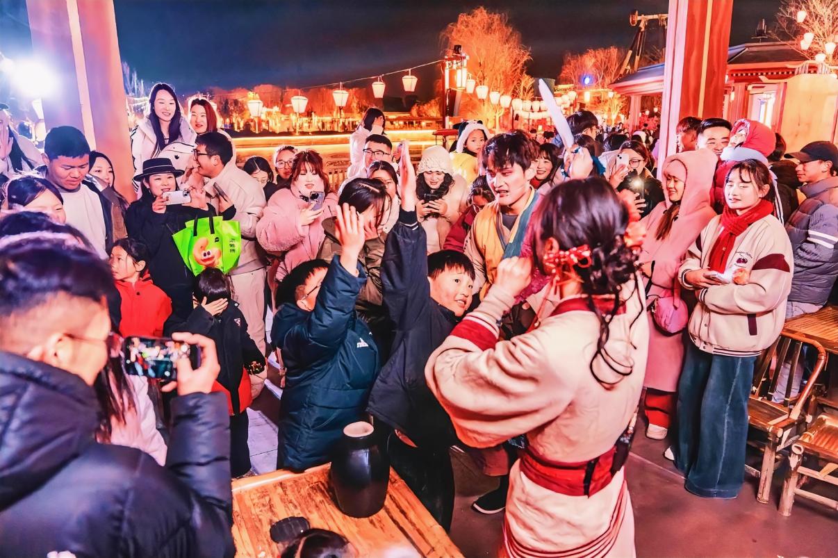 春节期间,园区内年味氛围浓厚。除了丰富多彩的新春演出、民俗体验,全新银票闯关互动玩法也正式上线:游客可参与超30款互动游戏,完成游戏任务赚取银票,兑换惊喜好礼。“带着孩子闯关攒银票,孩子全程兴奋,春节带娃来玩再合适不过了。”李女士说。