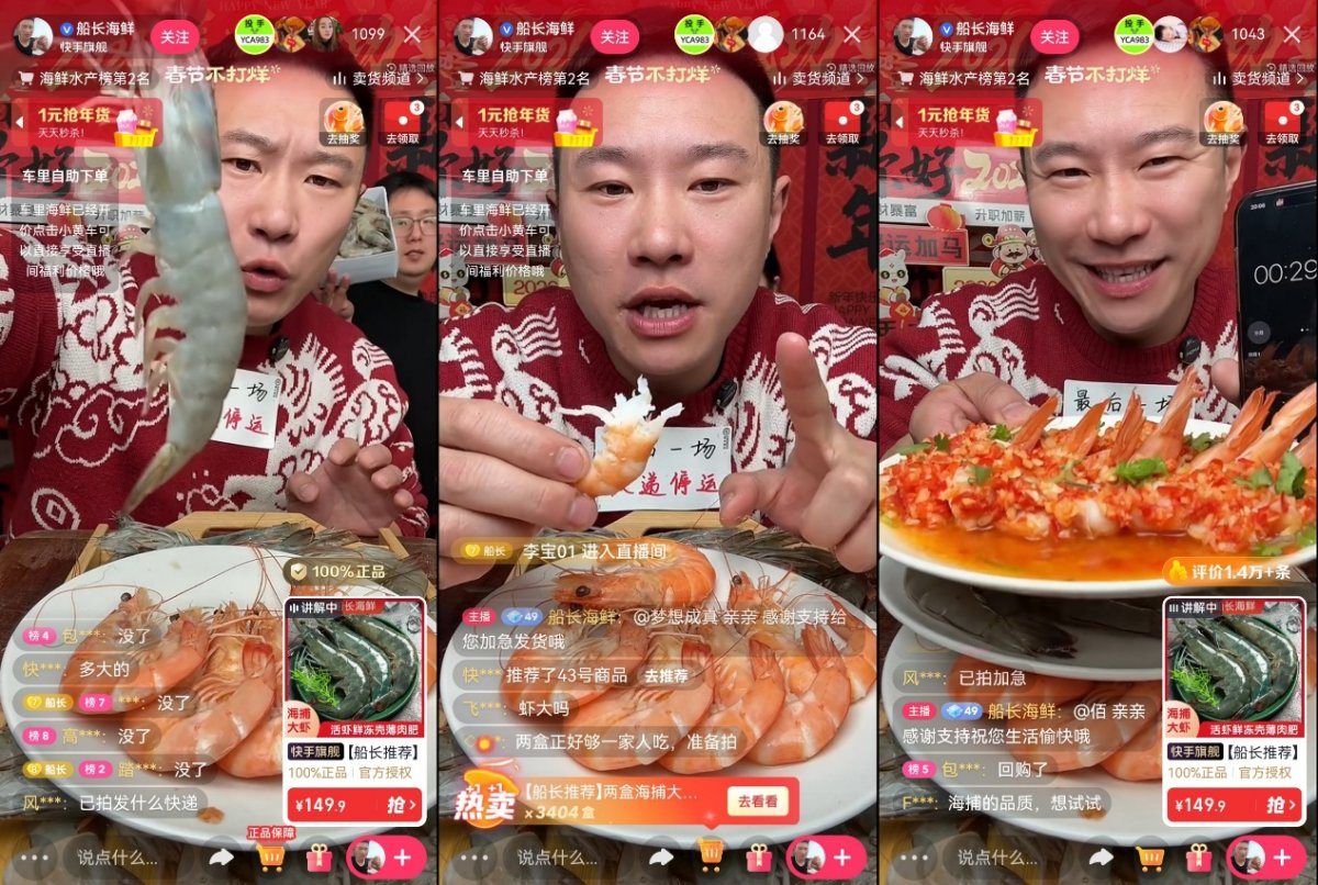作为快手上最早一批的海鲜主播之一,“船长海鲜”的直播间没有精致华丽的布景,浩瀚大海和渔船甲板成了最常见的直播背景,镜头中最吸引人的是刚捕捞上船的活蹦乱跳的海鲜。扑面而来的真实、鲜活烟火气,让他获得了越来越多粉丝的关注。