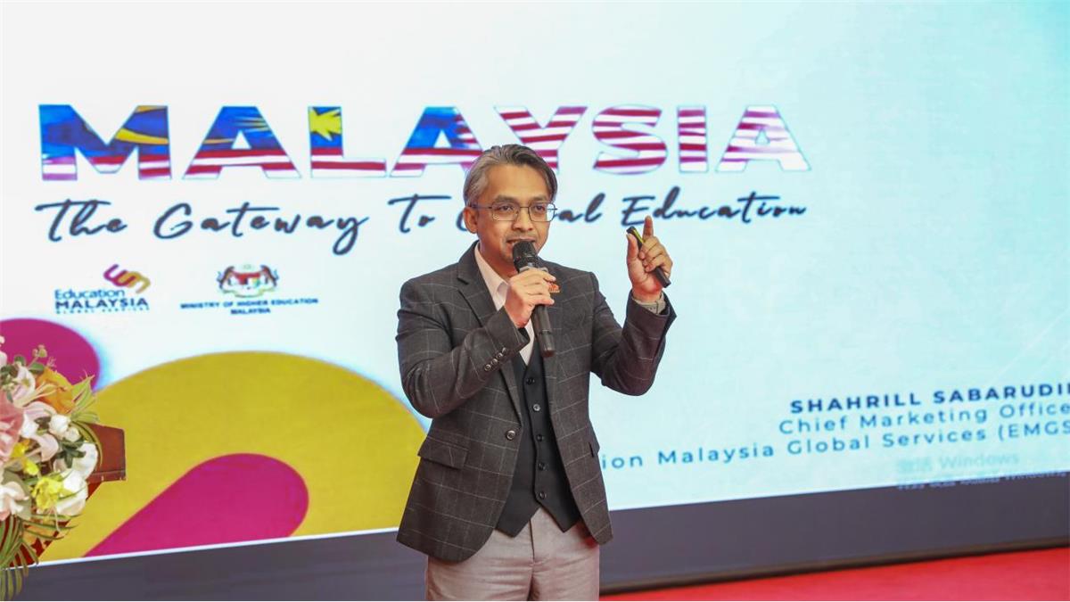 随后,马来西亚教育全球服务中心(EMGS)首席市场部主任Shahrill Bin Sabarudin在致辞中对青岛恒星科技学院的精心筹备表示感谢,并对马来西亚高等教育的发展优势作了系统介绍,重点解读了马来西亚作为国际化留学目的地在院校资源、办学质量、国际合作、学习成本和学生服务保障等方面的综合优势。他指出,马来西亚近年来高等教育国际影响力不断提升,既拥有较为优质的高校资源和多元化的国际课程体系,也具备较完善的国际学生支持服务,为中国学生拓宽国际视野、规划海外升学提供了更加多元和务实的选择。他表示,此次巡展青岛站的启幕,将进一步拉近马来西亚高校与中国学子的距离,推动中马高等教育资源精准对接,期待以此次活动为契机,深化与青岛恒星科技学院及中国高校的合作,培养更多兼具国际视野的优秀人才,为中马全面战略伙伴关系发展贡献教育力量。