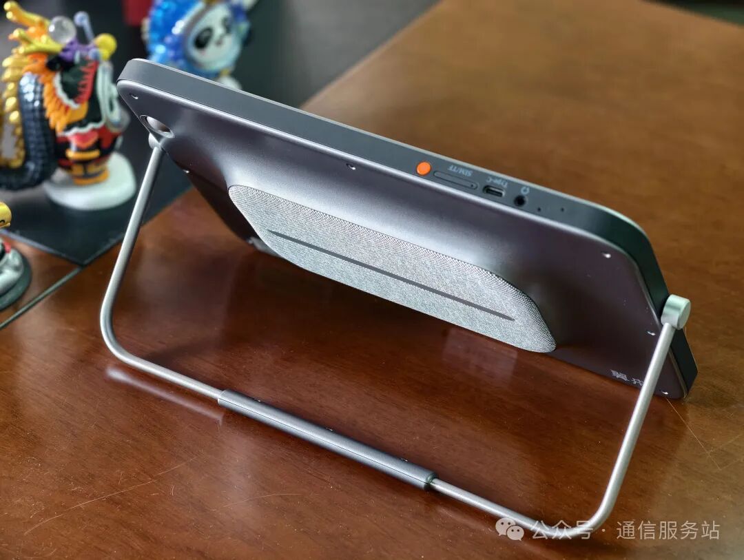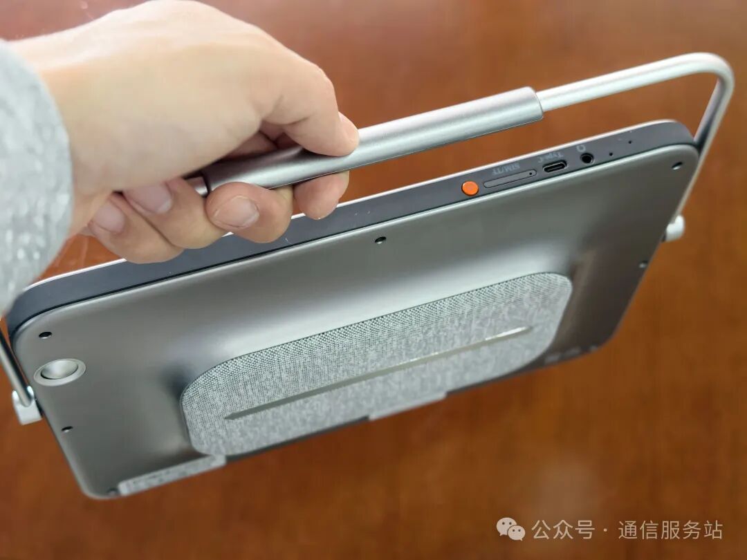 所以,它首先是一台可移动的小电视,有1080P的高清显示效果,可以放到餐桌上、卧室里,做饭的时候也可以放到厨房里看,还能拿着它出门逛公园、野外露营等等,背部配备了专门的音箱,外放声音超大,用处真的非常多。
