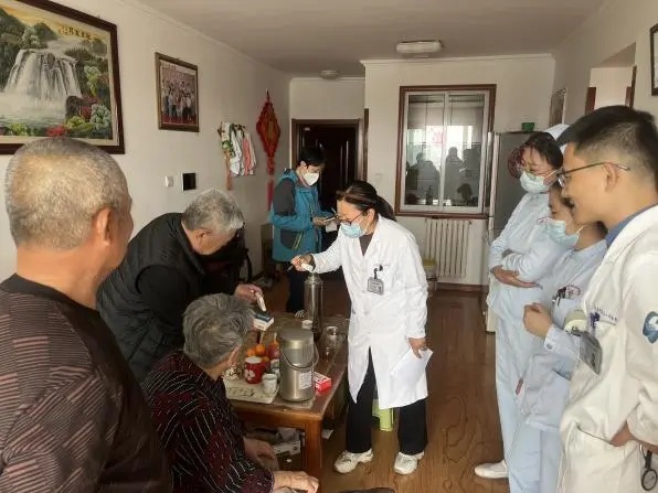 根据患者病情需要,三医专门组织由心内科、呼吸与危重症医学科、神经内科、内分泌科、皮肤科、药学部以及护理等多学科专家组队,与社区家庭医生一同走进患者家中。