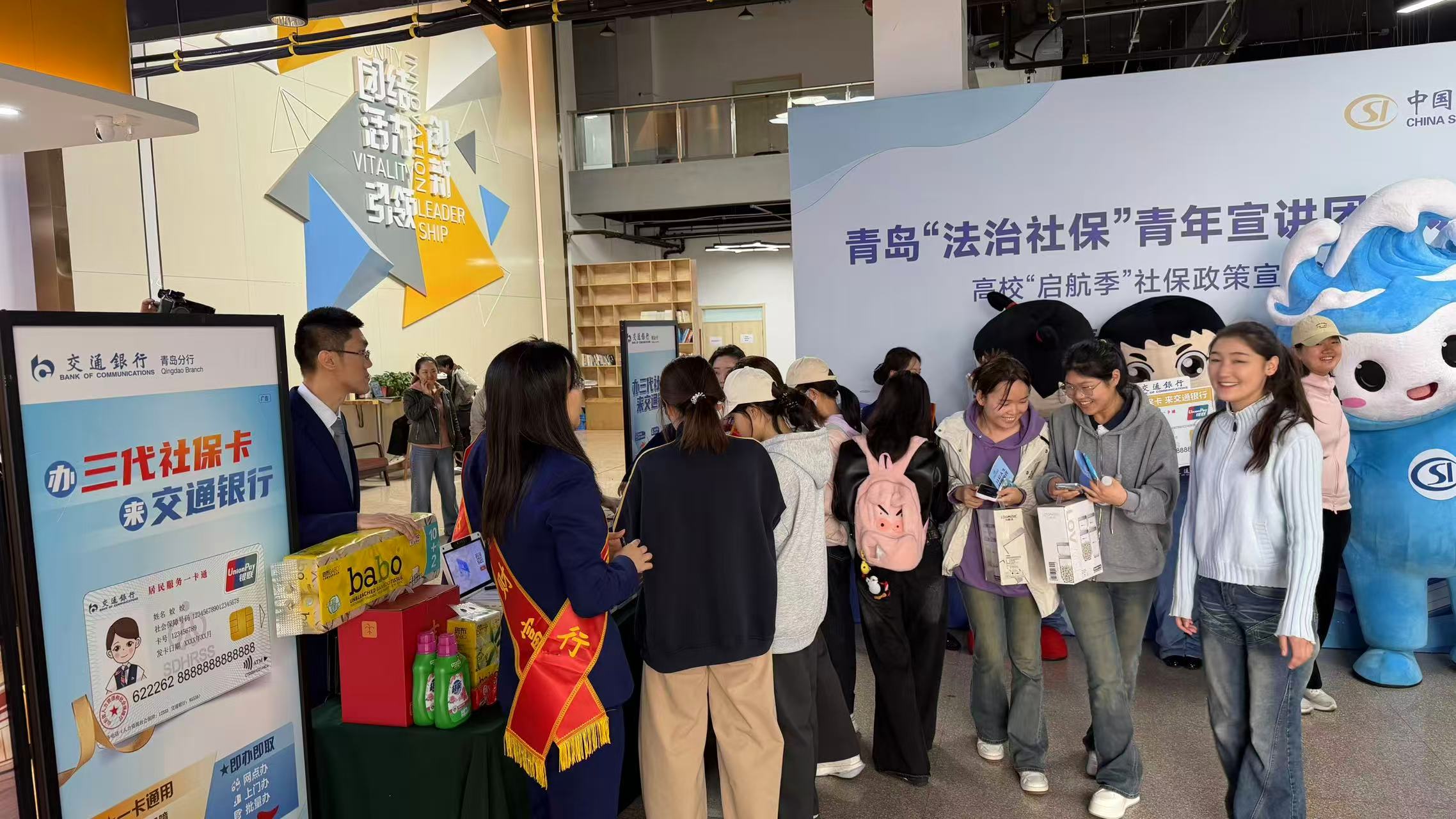 4月21日下午,由青岛市人社局联合团市委、市司法局主办的“法治社保”青年宣讲团“启航季”高校宣讲活动在青岛大学启动。作为首批具备社保卡发卡资质的银行,交通银行青岛分行深度参与,为毕业生带去灵活就业参保一站式办理及第三代社保卡业务宣讲,让社保服务“零距离”进校园。