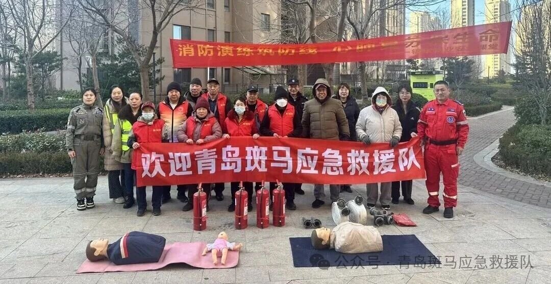 1月8日上午,青岛斑马应急救援队“平安家园守护行动”首场社区培训活动在市北区湖岛街道湖岛社区滨海1号小区中心广场举行。