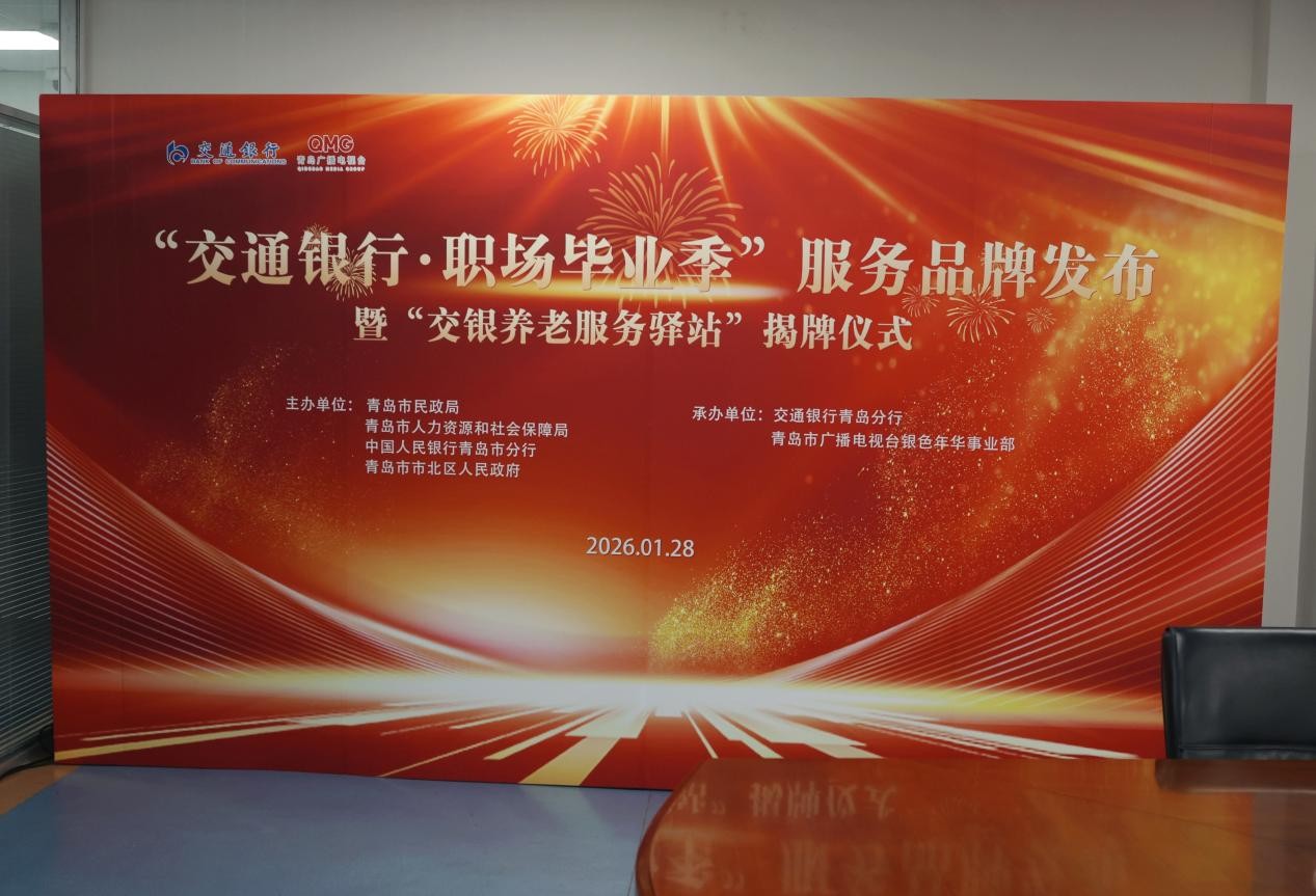 2026年1月28日,交通银行青岛分行联合青岛市民政局、人社局、广播电视台、市北区政府等多部门,在青岛四方支行举办“交通银行·职场毕业季”服务品牌发布暨“交银养老服务驿站”揭牌仪式